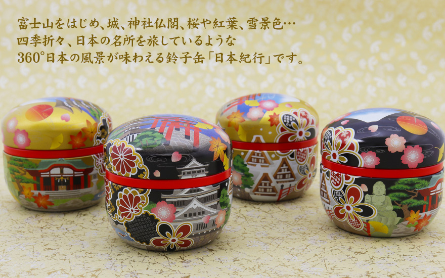 丸くて愛くるしいフォルムの鈴子缶「日本紀行」